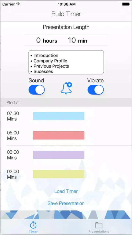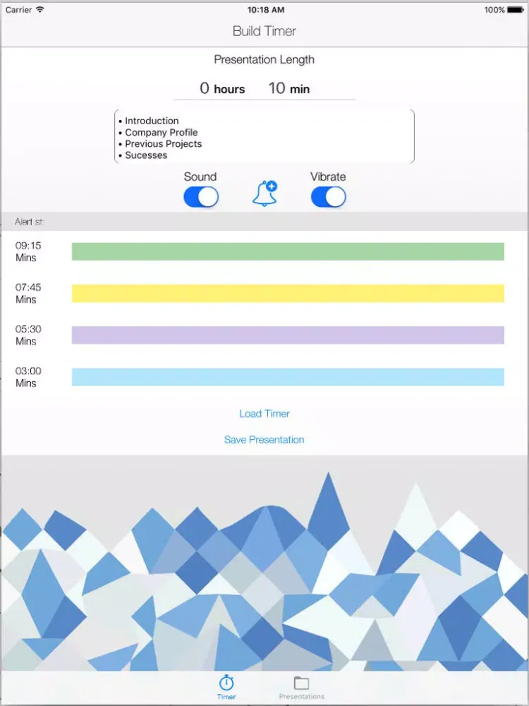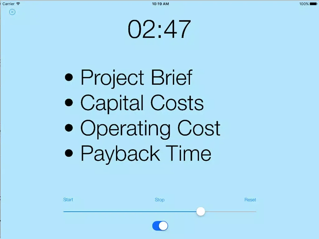 Practice your presentations like a Pro. Start by adding the alert times, cues and colours. As you improve take parts away until you have it nailed!