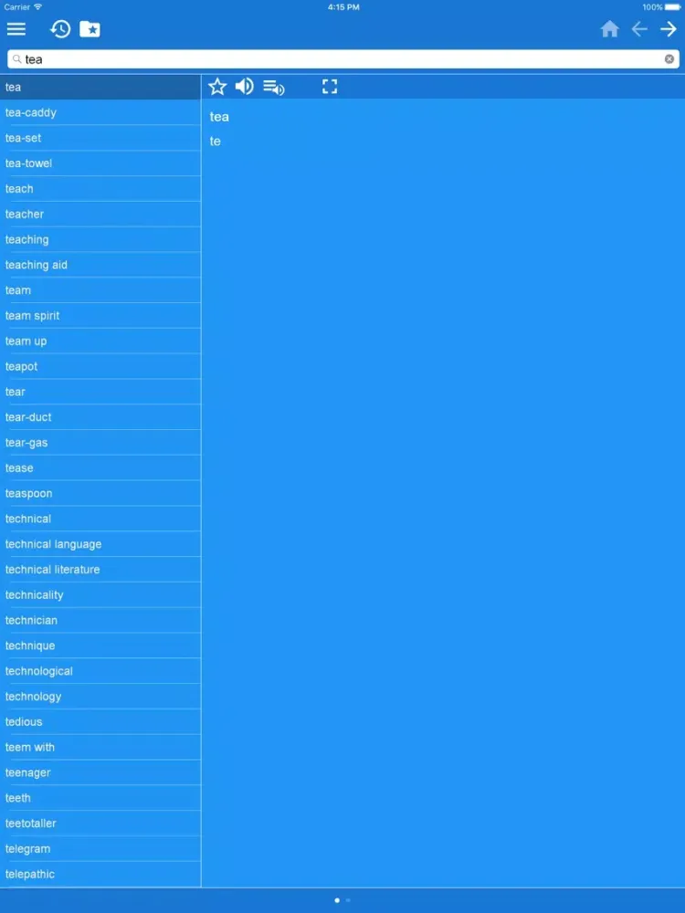 2. Favorites – you are able to add words to favorites list by clicking the “star” icon.