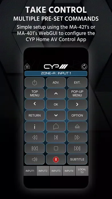 - Simple setup using the MA-421’s or MA-401’s webGUI to configure the CYP Home AV control App