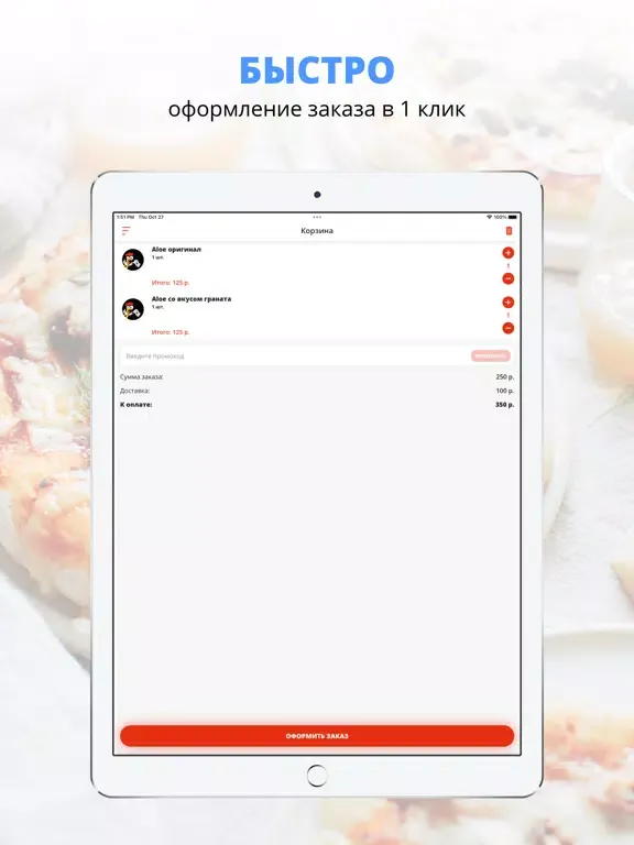 удобная корзина и быстрое оформление заказа,