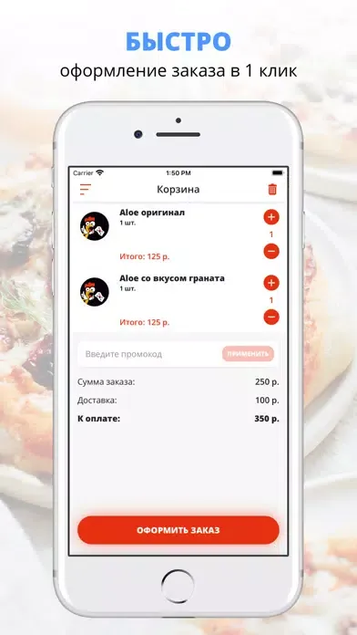 Скачивайте наше приложение, оформляйте заказ и наслаждайтесь любимой едой, где бы Вы ни были! Приятного аппетита!