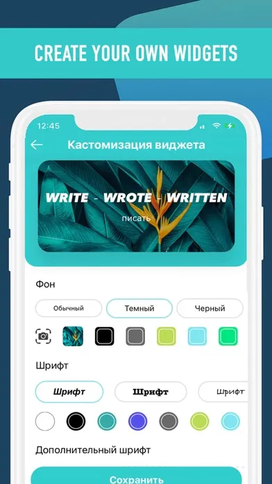Word Widget is really easy to use, any widget can be added and customized in a matter of seconds. Also customize the style of the widget to your liking! Not enough widget? Add push notifications and set up a convenient sending time for each set