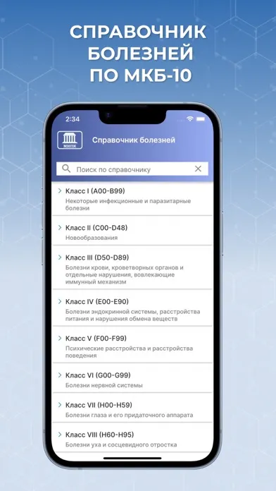 Внутри приложения вы также найдете справочник лекарств, где реестр лекарственных средств предоставит вам подробные данные о препаратах, их дозировках, побочных эффектах и противопоказаниях. А еще здесь присутствует справочник по международной классификации болезней МКБ-10.