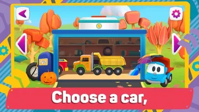 The game consists of several sequential stages. In them, the child picks the car he or she likes, learns what it is called and what it is used for, uses parts to assemble it in a 3D car-building stage, and then travels one of our scenic tracks with it, exploring the world of Leo the Truck. On the road, fun adventures and rewards for helping Leo’s friends await.