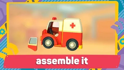 It is easy to assemble the cars. The main part is located in the middle, and then you need to drag and drop the other parts onto it in the correct order. During the assembly process, the child learns the name of each part (narrated by a professional voice actor).