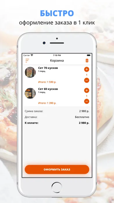 Скачивайте наше приложение, оформляйте заказ и наслаждайтесь любимой едой, где бы Вы ни были! Приятного аппетита!