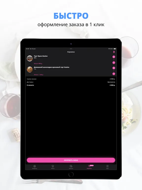 Скачивайте наше приложение, оформляйте заказ и наслаждайтесь любимой едой, где бы Вы ни были! Приятного аппетита!