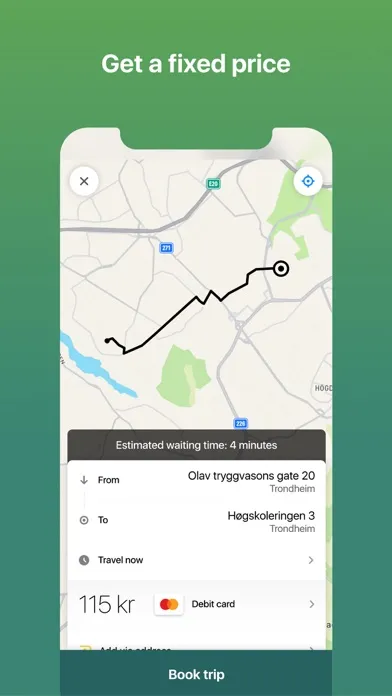 Download the app and register, then you are ready to order a jip. In the app you see how much your trip will cost before you book, and you can follow where your taxi is at any given time. You can even pay for the trip in the app, if you want to.