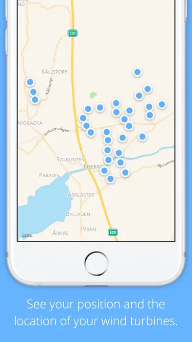 - The map makes use of your device’s built-in location capabilities to provide a geographical overview of your wind turbines in relation to your own position.