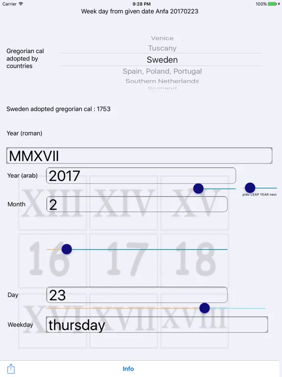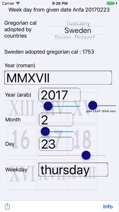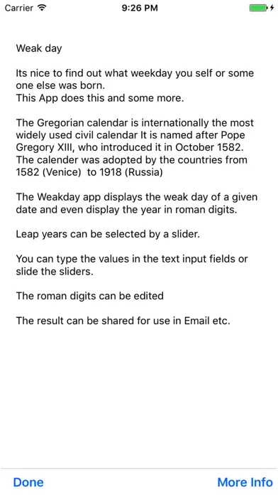 The Weakday app displays the weak day of a given date and even display the year in roman digits.