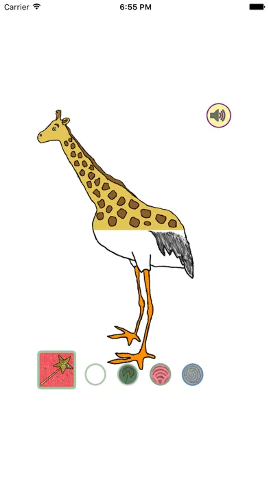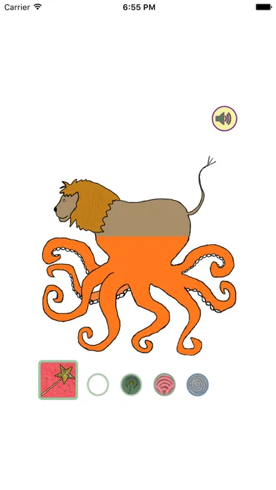 Tap the Magic wand button to let chance decide or swipe the pieces sideways yourself. If you put the right two pieces together you'll hear the corresponding animal sound.