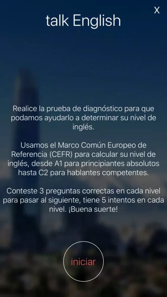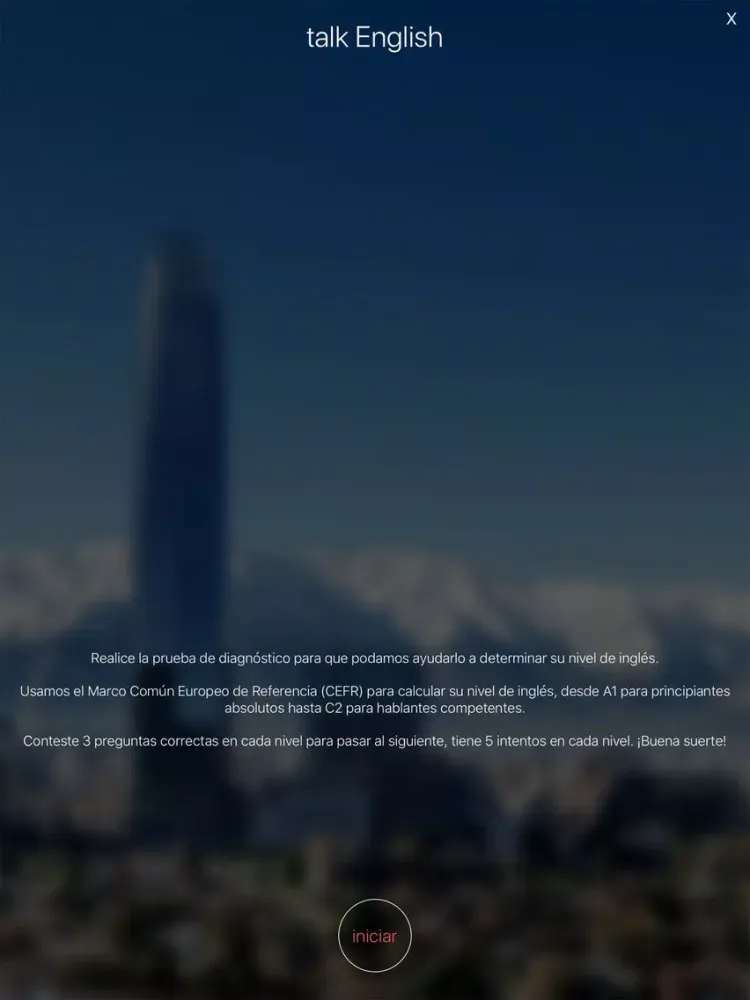 Esta aplicación es para ayudar con los estudiantes de habla Inglés. Cree un TE ID y responda las preguntas para averiguar su nivel de inglés, usando el estándar global de CEFR.