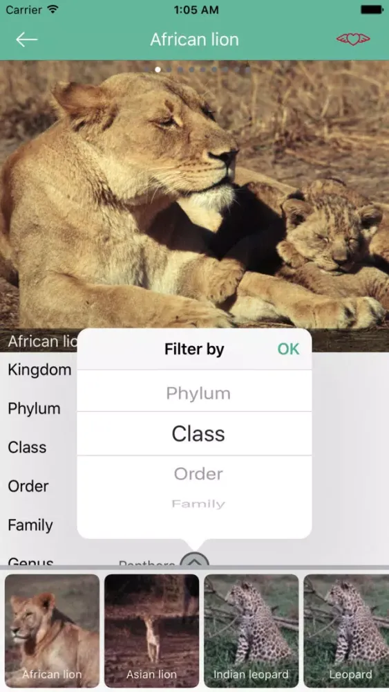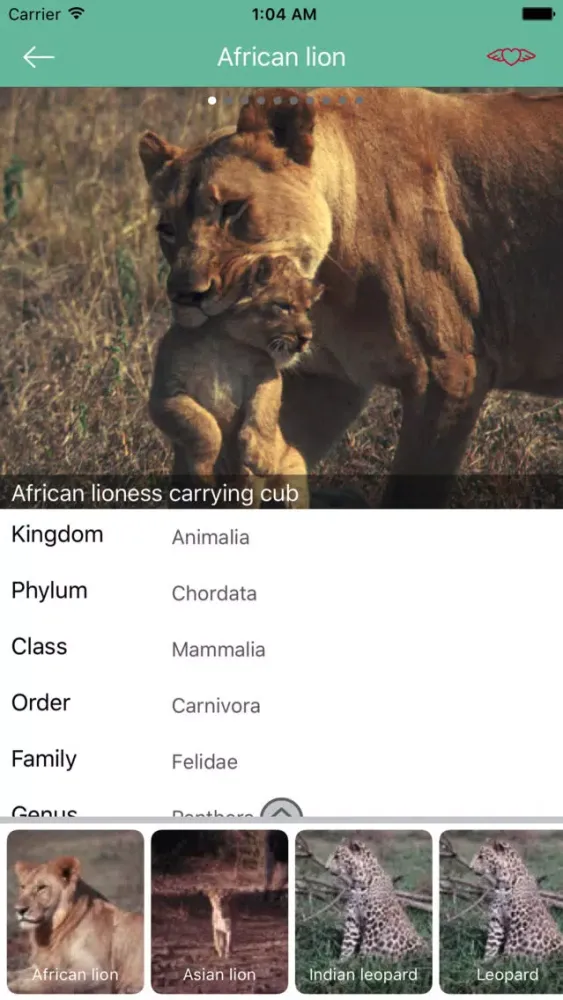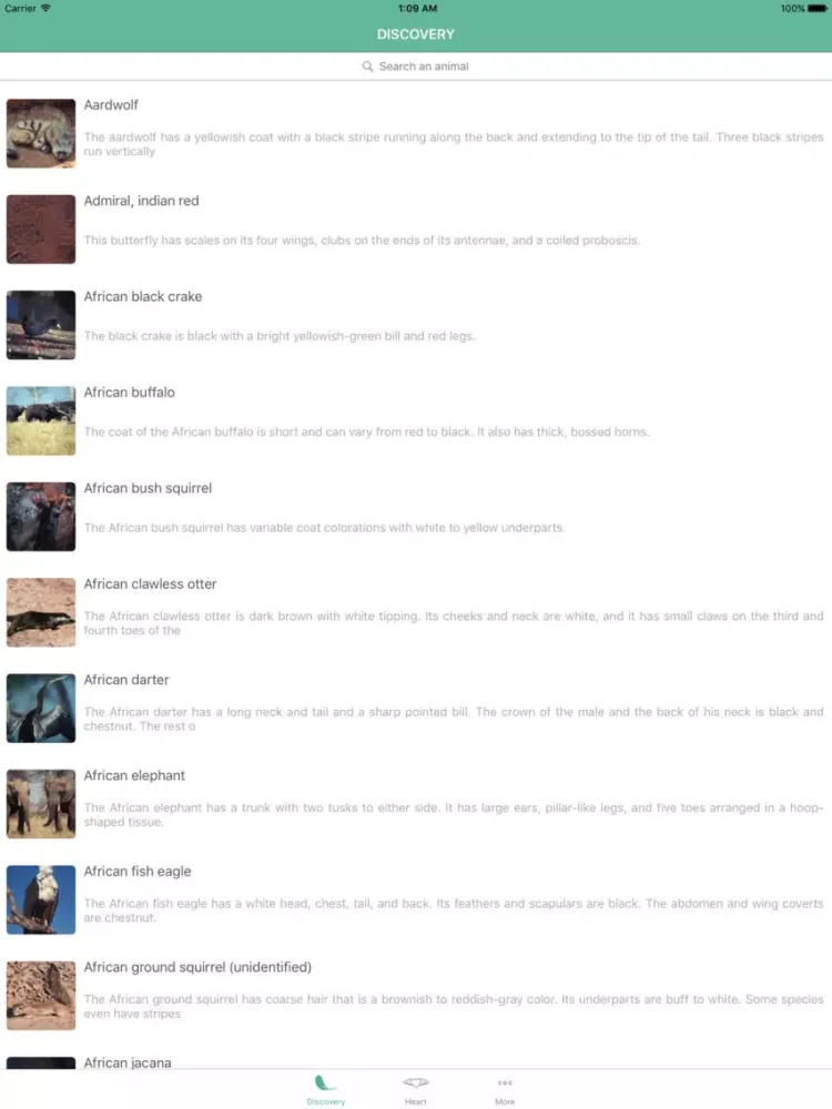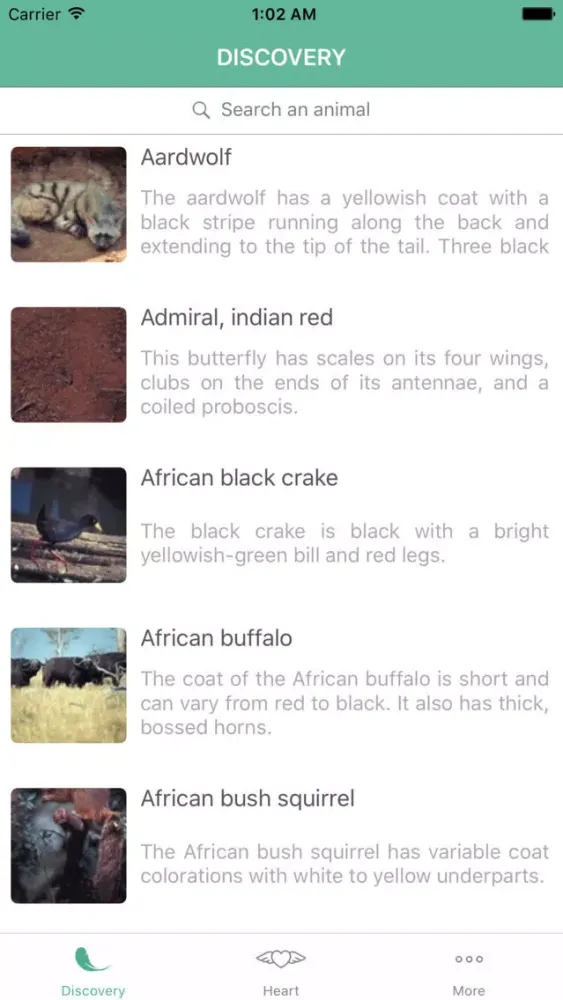 The app has a nice search feature to search by either the common name or the scientific name of the animal.