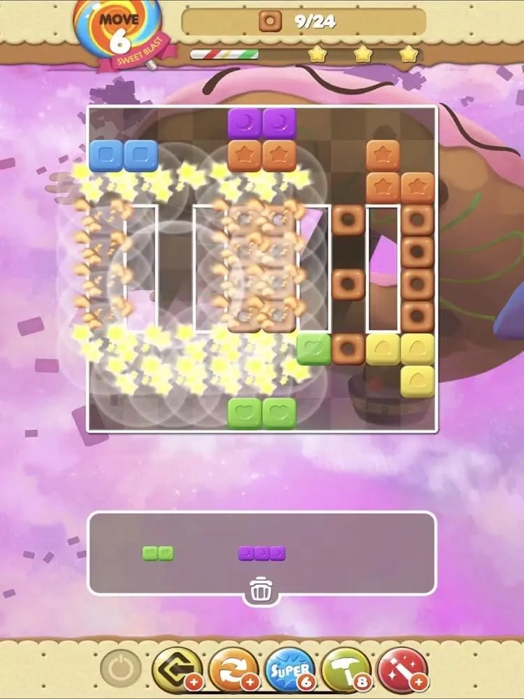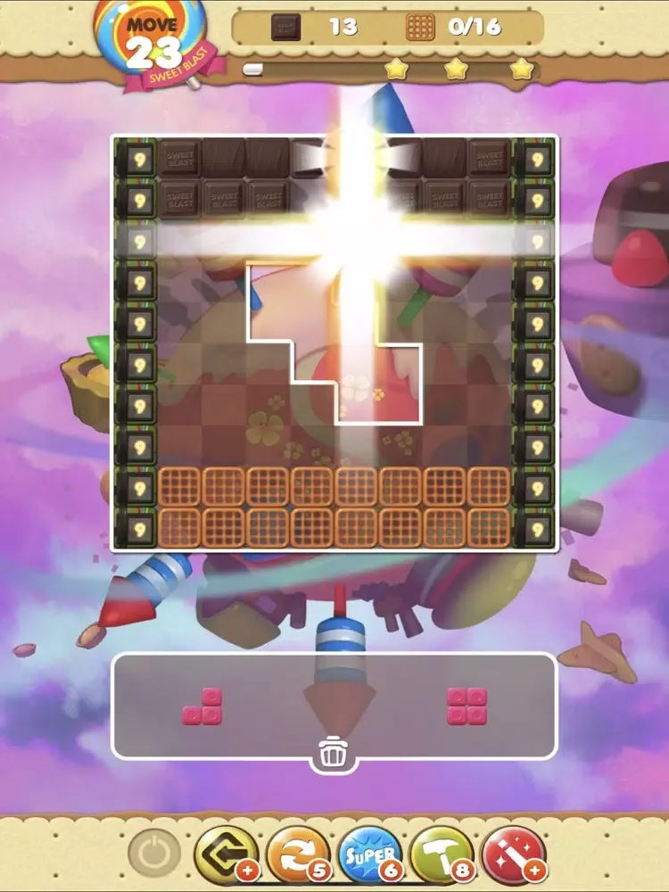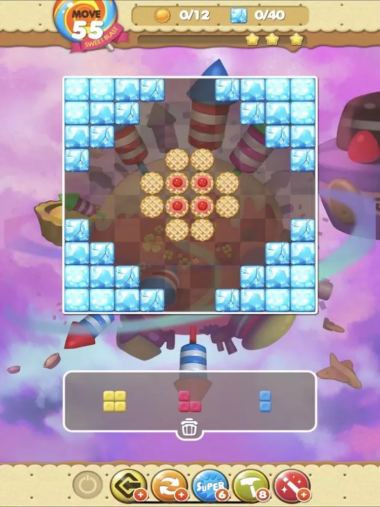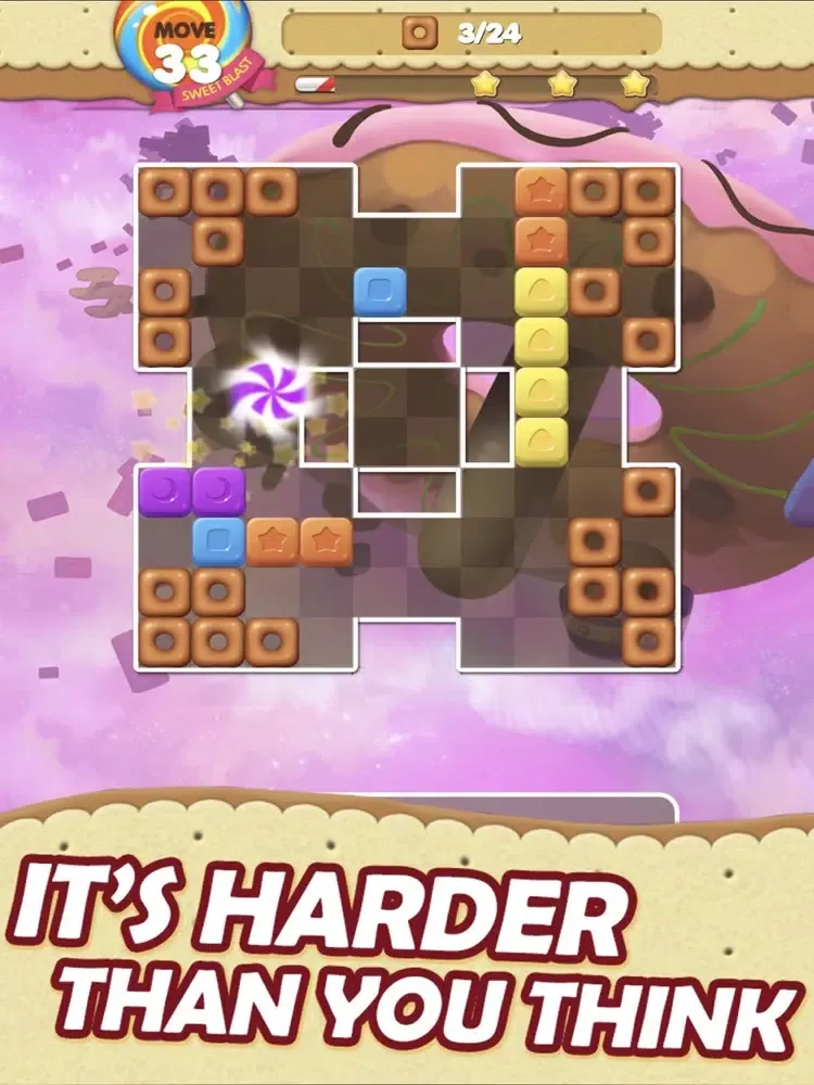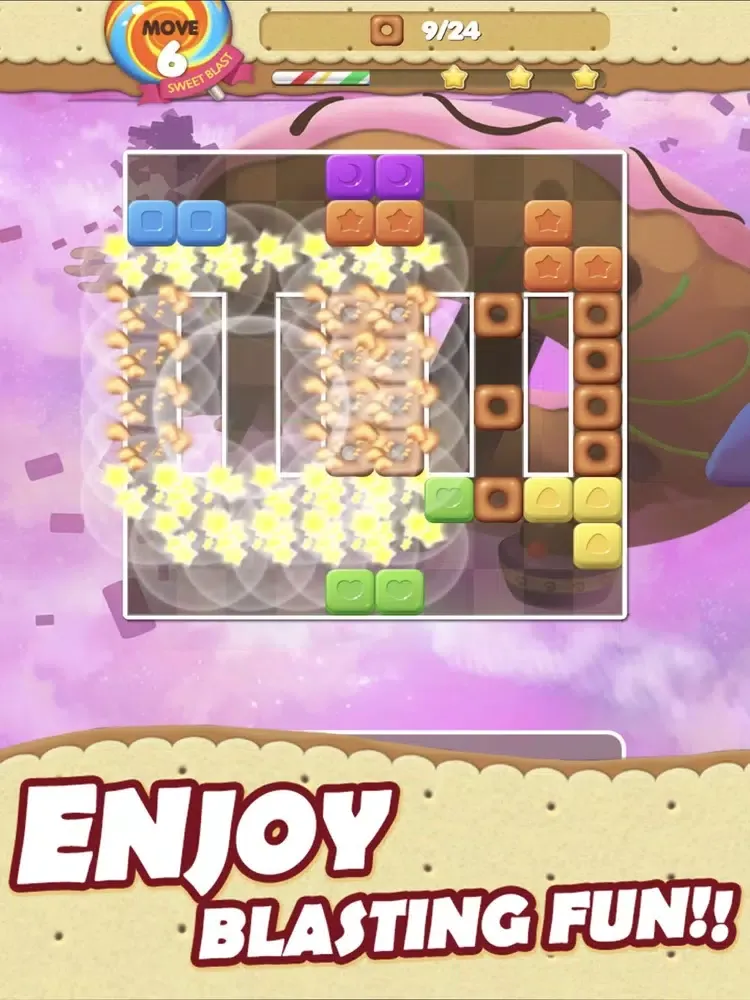 [Sweet Blast] is a very simple, drag & drop style puzzle game. Just move the block in the lower queue to the upper tiles and make up a line
