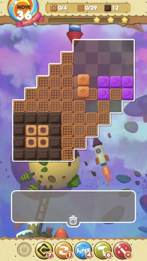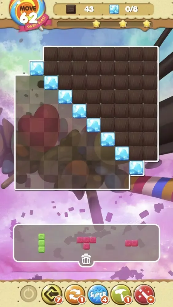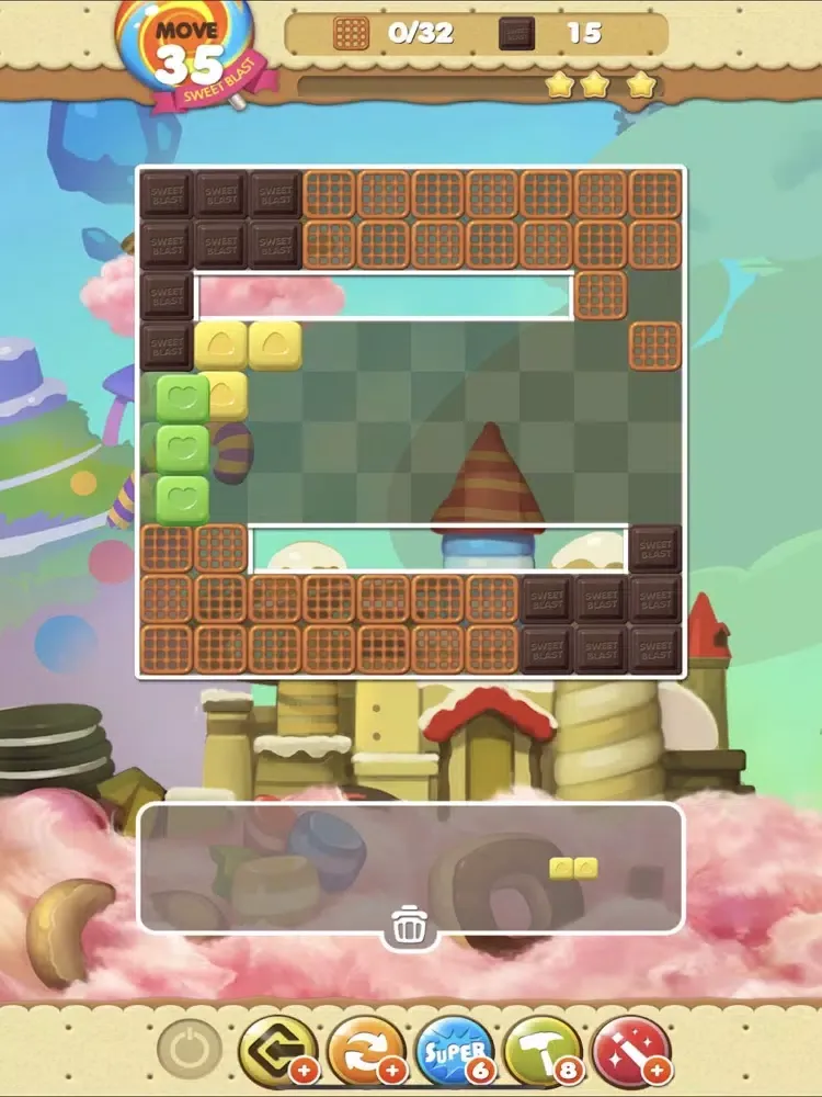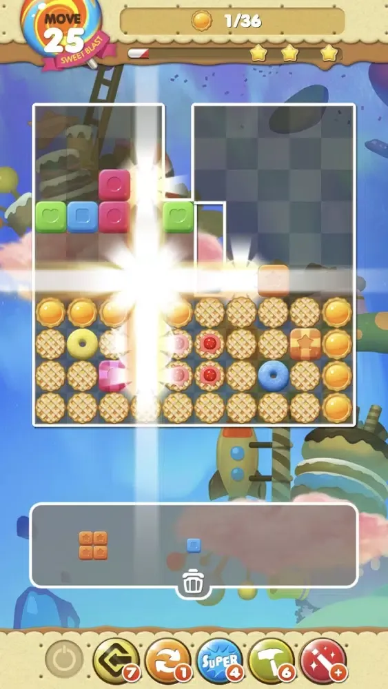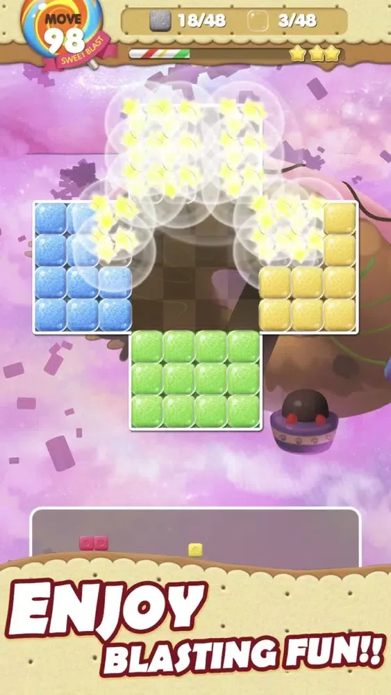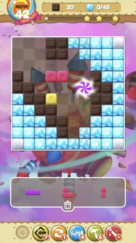 [Sweet Blast] is a very simple, drag & drop style puzzle game. Just move the block in the lower queue to the upper tiles and make up a line