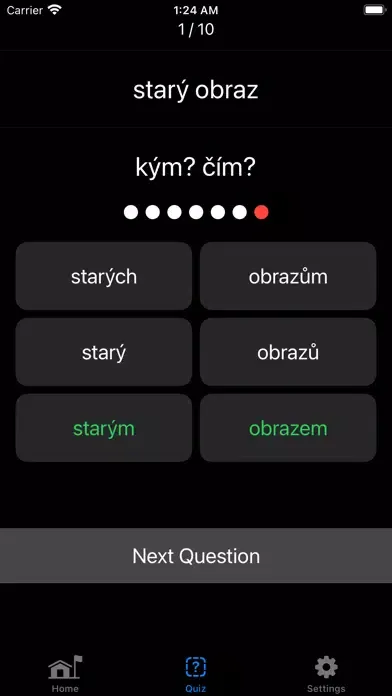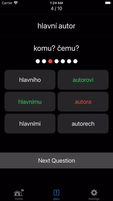 Endless Practice Opportunities: With an extensive question bank, Kdo? Co? offers you the chance to drill patterns into your memory. Practice until you're confidently adept at declension, thanks to a wealth of questions at your disposal.