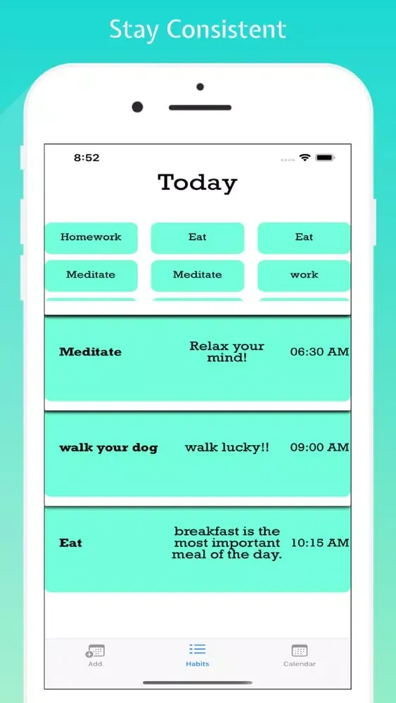 A simple habit keeping app, which will help you stay consistent and guide you on the journey to a better you. Simply add habits, complete them, and track them. It's that simple, while still being efficient.