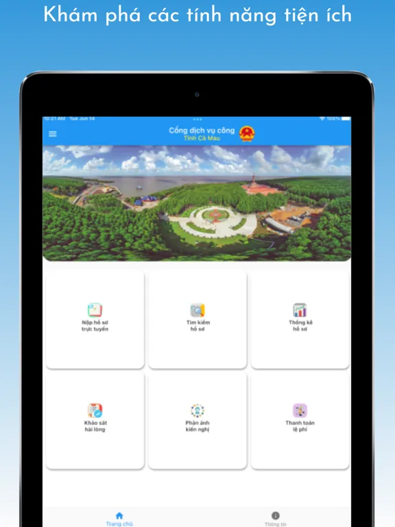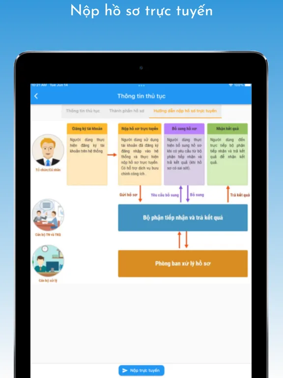 Ứng dụng hổ trợ tổ chức cá nhân đăng ký hồ sơ trực tuyến mà không cần phải lại cơ quan để đăng ký các hồ sơ, tiết kiệm được thời gian và công sức. Ngoài ra giúp tổ chức cá nhân tra cứu, quản lý hồ sơ, khảo sát về mức độ hài lòng của hồ sơ và cán bộ xử lý hồ sơ, thông báo tức thời cho tổ chức cá nhân biết về tình trạng hồ sơ đó....