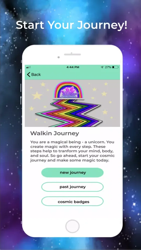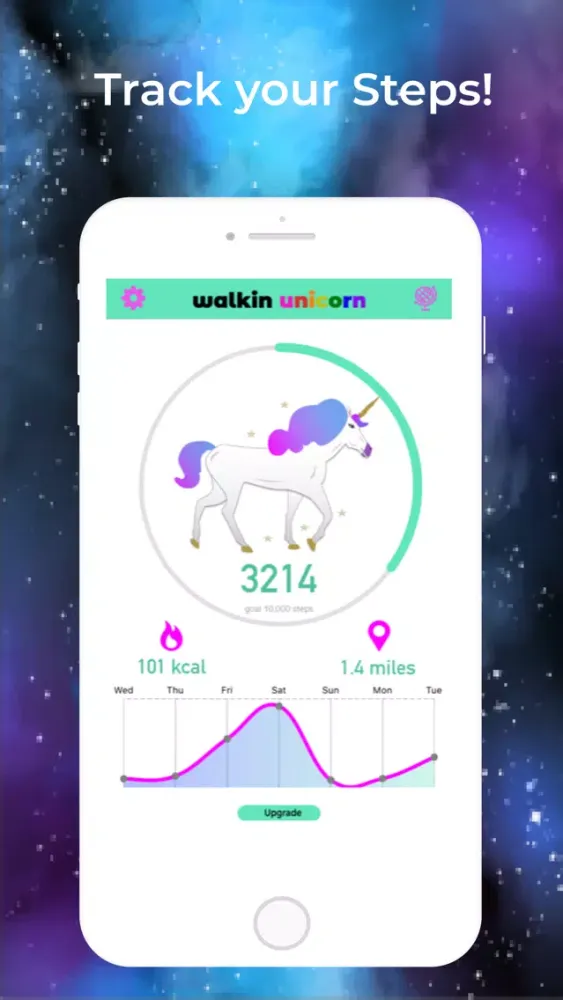 Walkin Unicorn is a great way to track your steps, calories and distance. The location tracking feature will track your outdoor workout while giving you a fun challenge to go on a cosmic journey that helps you achieve your fitness goals.
