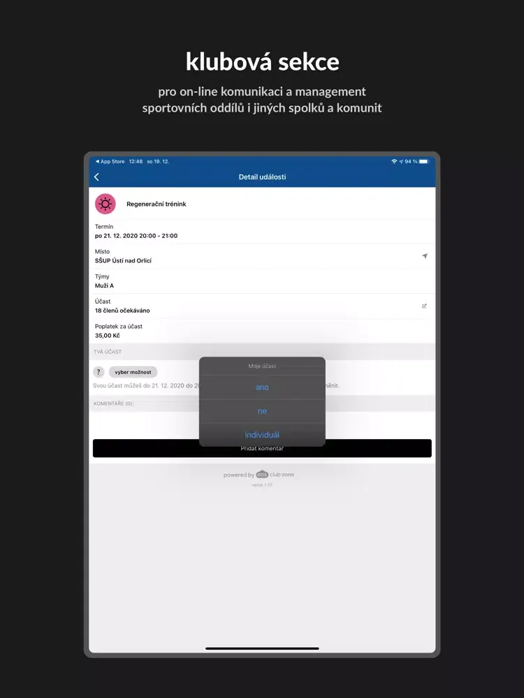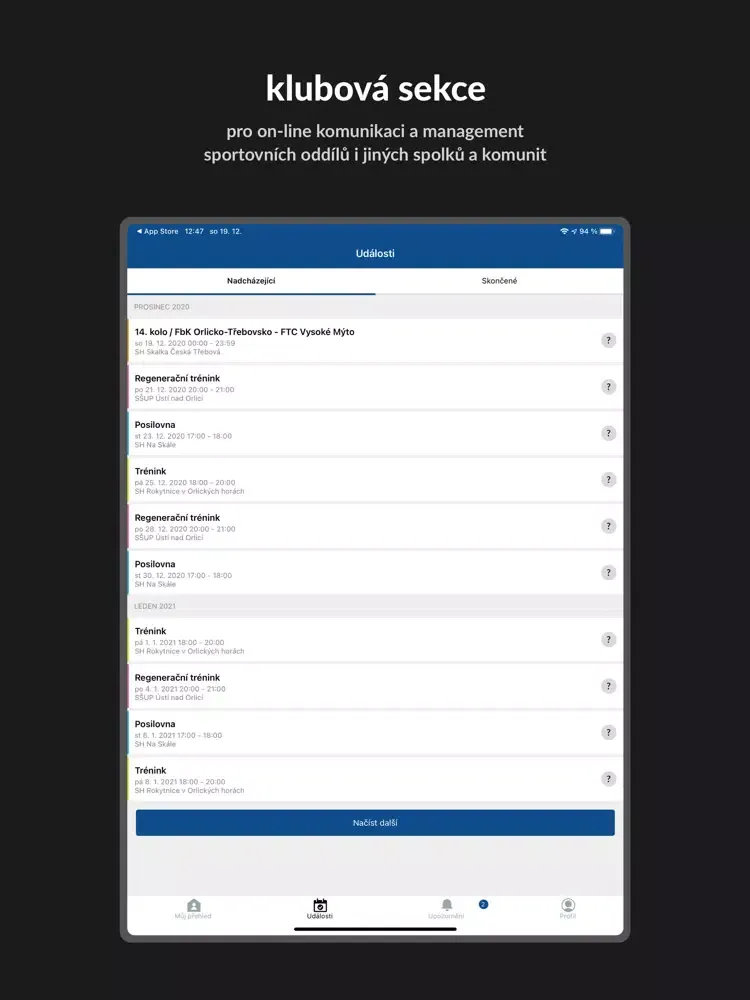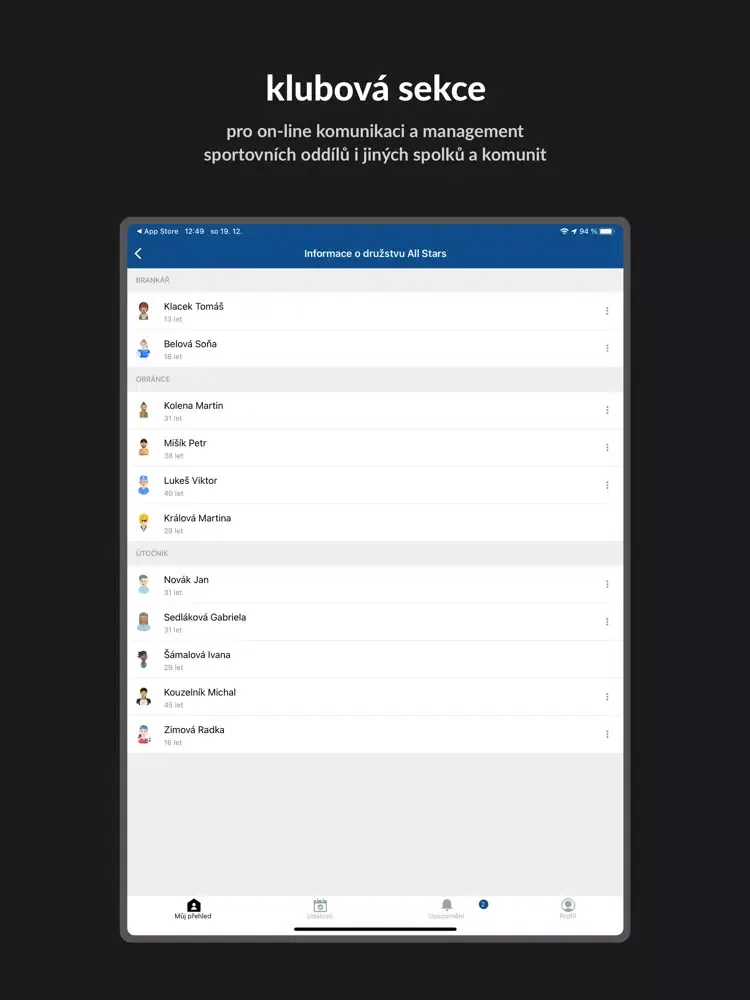 - umožňuje veškerou komunikaci klubu na jednom jediném místě