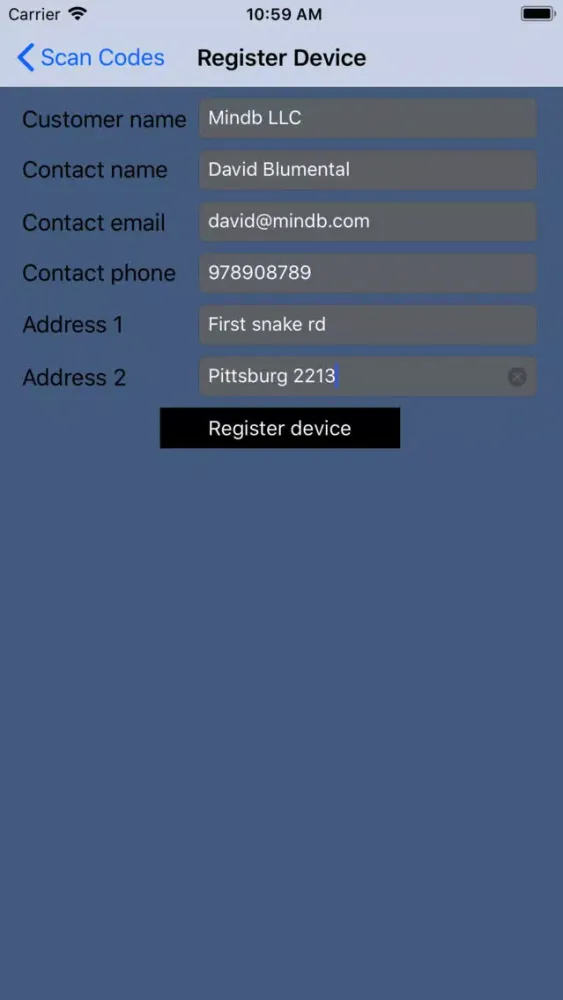 Screenshot di AMI Device Reg. iPad