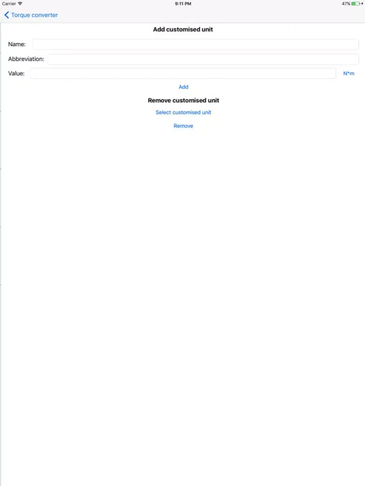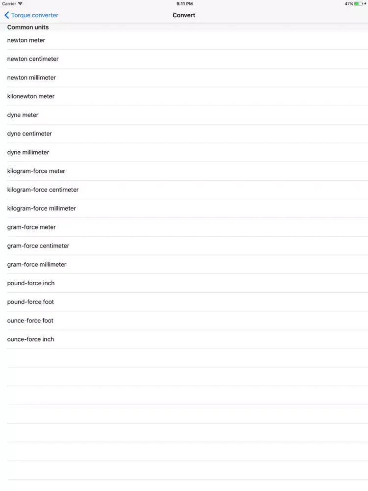 Use this useful tool to convert torque choosing one of the 17 units of measurment included in this app (with the availability to add custom units), that are: