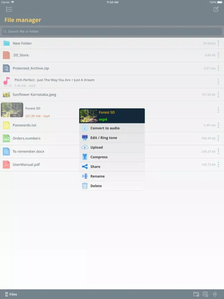 BrowserPro contains amazing file manager which lets you store, view and manage documents on your iPhone, iPad and iPod.