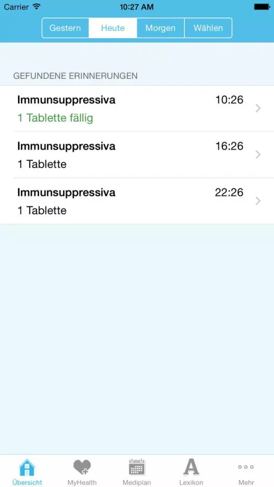 Erfasse Deine Medikamente und Einnahmen und lass Dich bei der Einnahme durch Erinnerungen unterstützen.