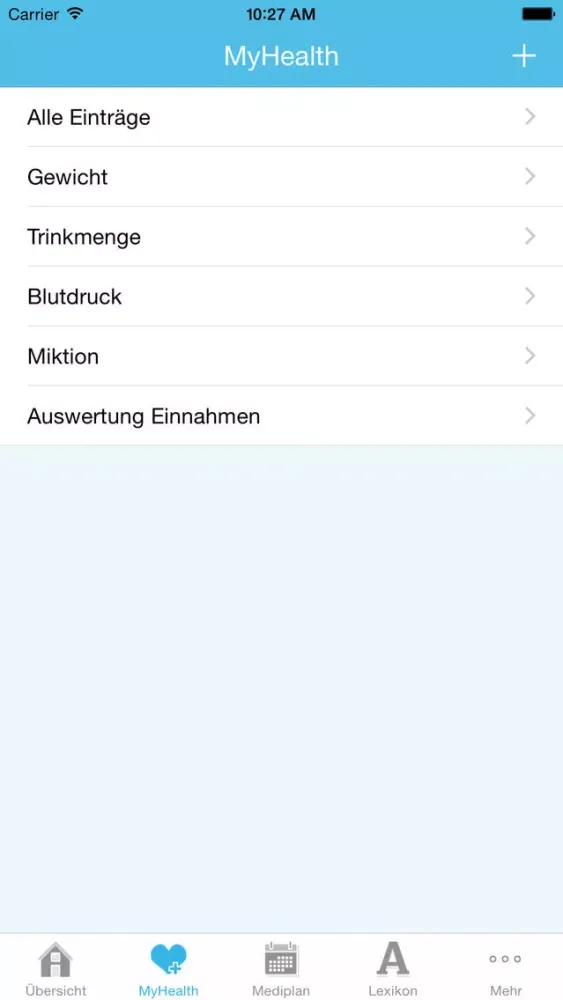 Gesundheitsdaten wie Gewicht, Trinkmenge, Blutdruck und die Anzahl Miktionen können auf deinem Handy gespeichert und von Dir verwaltet werden.