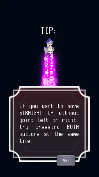 The player can control the JETPACK WIZARD with two buttons at the bottom of the screen. Pressing the right button makes him fly up and to the right, while pressing the left button makes him fly up and to the left. Pressing BOTH buttons at once makes him fly straight up.