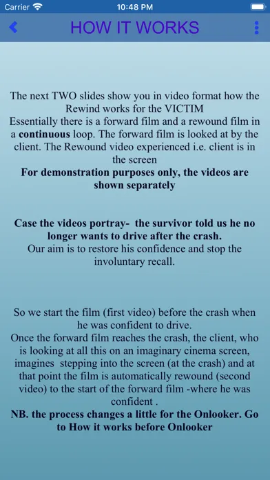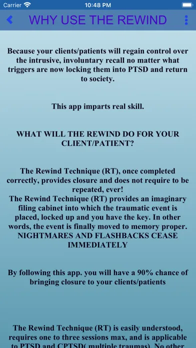 The Rewind Technique will give you closure which means an end to the nightmares, flashbacks, avoidance behaviour, mood swings, exaggerated startle response and increased arousal. No other treatment currently available can claim to provide closure. The RT is easily understood and once completed correctly does not require to be repeated, ever. As medical director of the PTSD Unit at the BMI Birmingham Hospital,UK and the originator of the Rewind Technique for treating PTSD, I can assure you that this treatment has been proven effective and enduring in clinical practice since 1991.