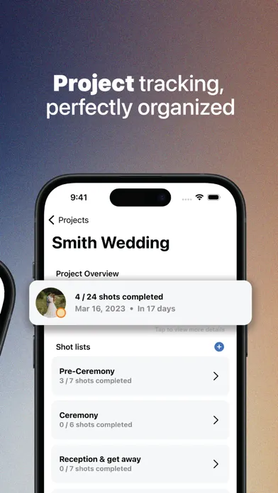 Plan and keep track of every detail of each of your current projects. Give them a status, due date, as well as assign moods to a project.