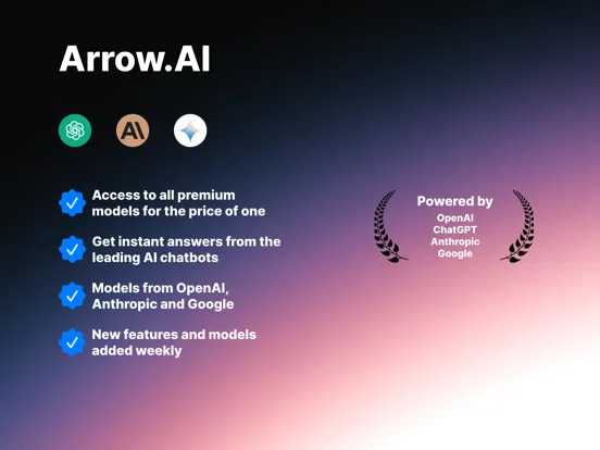 Unlock the full potential of AI with Arrow.AI, your single membership pass to the world’s most prestigious AI technologies. Featuring access to giants like OpenAI, Anthropic, Google, Perplexity, xAI and Deepseek's AI models—with more partnerships on the horizon—Arrow.AI offers an unrivaled range of capabilities that put powerful tools at your fingertips.