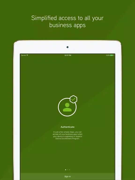 The AppDirect Authentication App allows users to authenticate into their company-managed iOS devices using their standard employee credentials. On login through the Authentication app, users get Single Sign-On to all enterprise applications that are managed and delivered to their devices by their company.