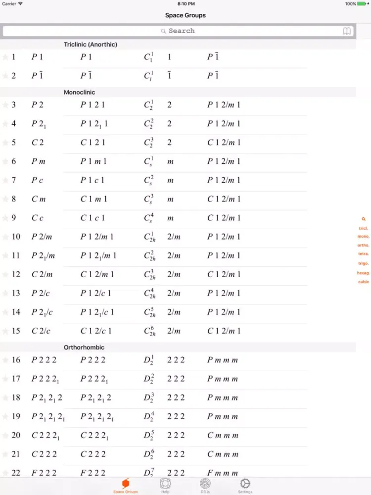Space Groups is a simple app that provides information on all 230 crystallographic space groups.