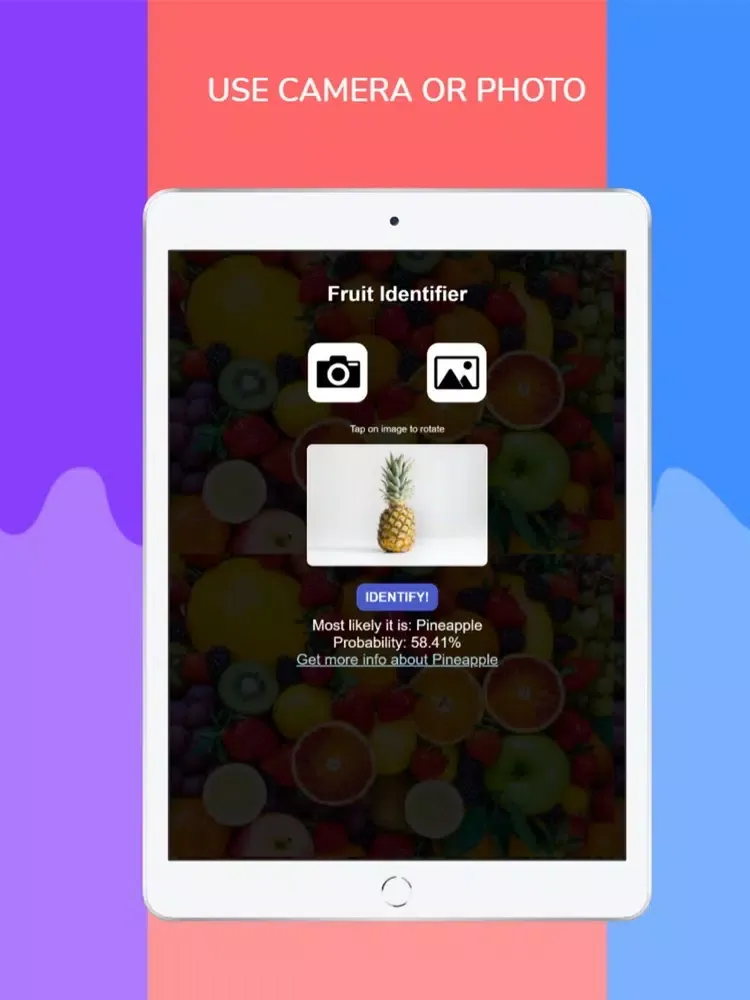 Seen a new fruit and don't know what it is? No problem take a picture and let us identify it for you. Instantly link to the Wikipedia page to learn more.