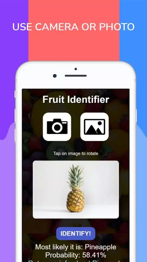 Play around and take pictures of as many fruits you can around the house and see what our app identifies it as.
