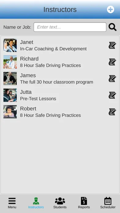 The Software offers a speedy but rather simple to understand program, with an equally easy user interface making operations as easy and as quickly as possible. The main menu shows four distinct icons of Instructors, Students, Reports and Scheduler.