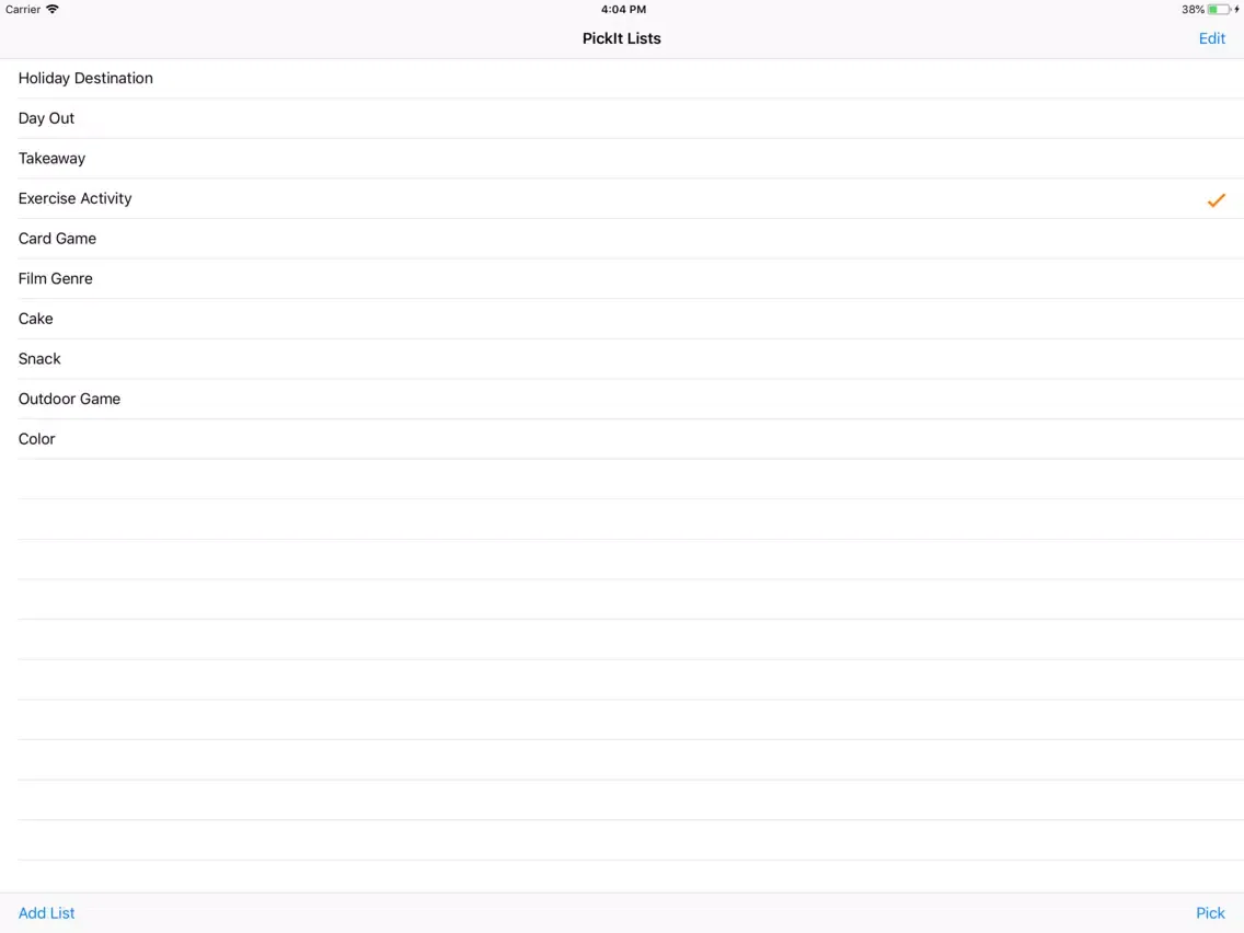 Create your own lists, and let PickIt decide.