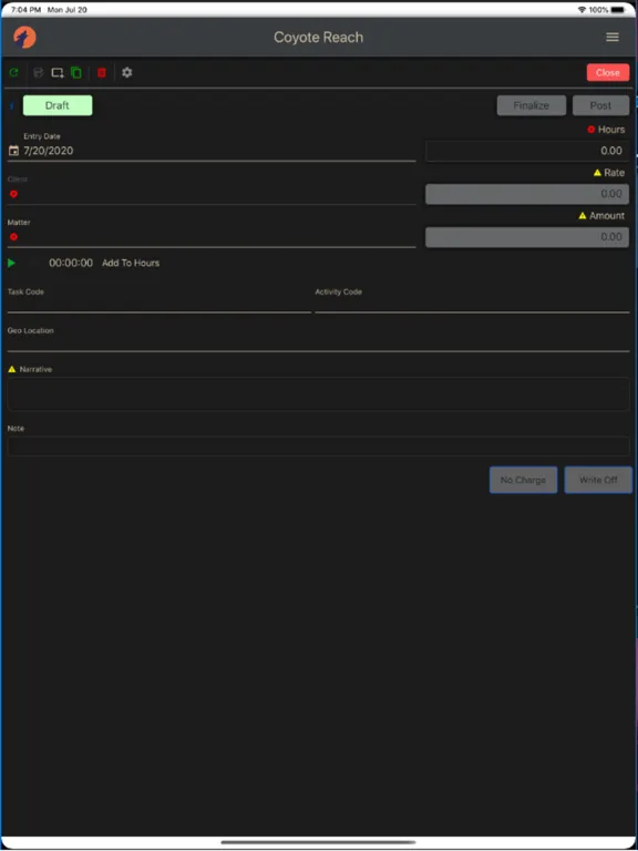 Coyote Reach is a mobile timekeeping app for attorneys already using Coyote Analytics. This app provides time and expense entry with editing capabilities for attorneys on the go. Try the Coyote Reach app out today. If you have questions about getting your firm set up with Coyote Reach, email your SurePoint Client Success Manager. For more information or support for the app, visit https://support.surepoint.com.