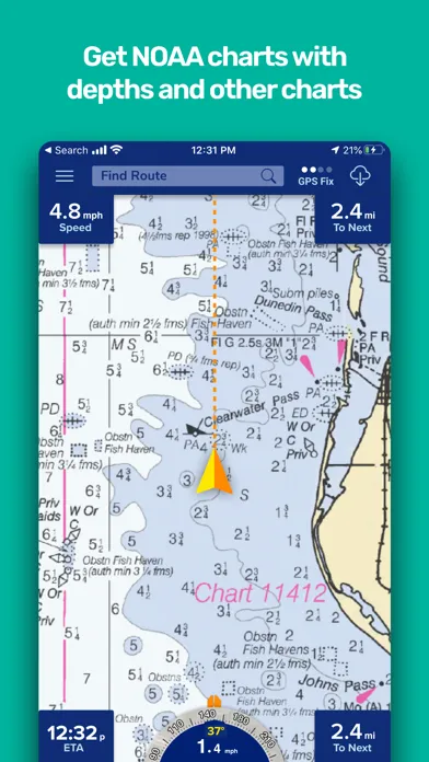 • High-resolution NOAA nautical chart coverage with depths for all U.S. coastal areas, the Great Lakes, major U.S. river systems, and Brazil plus global high-level nautical charts. Charts are automatically updated based on NOAA chart corrections.