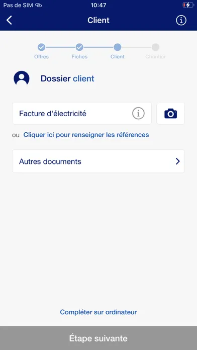 En vous identifiant, vous pouvez enregistrer par une simple prise de photo, les informations nécessaires à la constitution du dossier relatif aux offres Agir Plus d'EDF.