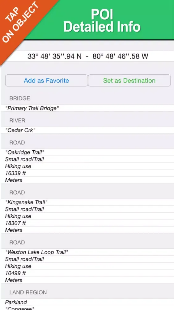 Park map applications are extremely advanced contains embedded electronic charts with all information collected from the National Park Service and local sources. The maps contain all multiple trails (Hiking, biking, Stairway trails, Bicycle trails, Equestrian trails etc.,) and Point of interests (POI) like Campgrounds, Eating places, Ranger Stations, Picnic areas, Boat/Canoe launching, Parking areas etc., which are provided depending on the relevant park areas they exists.