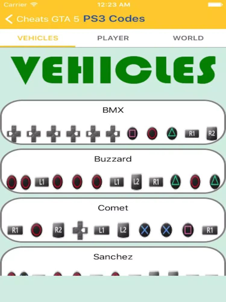 Cheats GTA 5 app intègre astuces pour PS3, Xbox et l'application PC.This vous donne les codes pour toutes les interprétations de l'amusement. Pour les joueurs de GTA 5, les joueurs PC doivent être saisies par le clavier, alors que les joueurs de PS3 et Xbox peuvent habiliter les codes trick par touches de la télécommande.