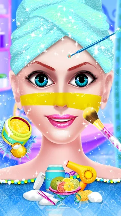 * Beautify frozen girl’s face by applying perfect-matching glitter blush on and sparkling lipstick