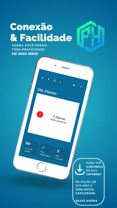 A PHNet quer te manter sempre conectado e estar cada vez mais próxima de você! Com esse aplicativo você terá acesso a todas as facilidades de uma empresa conectada que prioriza a qualidade dos serviços e o bem estar de seus clientes.