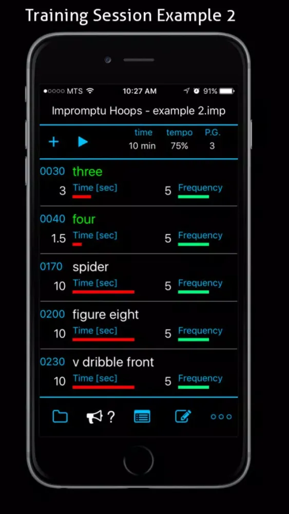Impromptu Hoops is a tool for basketball players to develop skills and reaction time to take their game to the next level. It allows the coach or player to design game-like basketball drills that consist of a series off randomized commands immediately executed by the athlete. Numerous unexpected direction changes and transitions in an Impromptu Hoops practice session result in an efficient instinctive skills and ball handling training. Being an offline tool it can be used anywhere, outside or in the gym, with or without the hoop. Effective training continues in the absence of the coach.