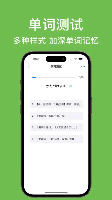 List记日语单词是一款利用科学抗遗忘的背日语单词软件,优雅的界面、简便的操作,让你轻松拥有海量词汇!