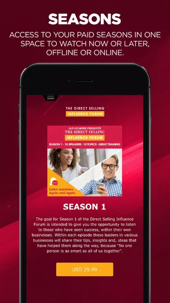 Season 1 Podcasts feature10 Successful Direct Sellers from 10 different companies. Yours to replay again and again !
