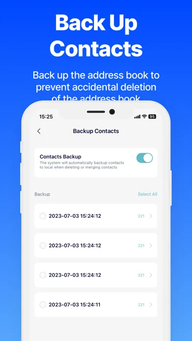 - Contacts backup, restore